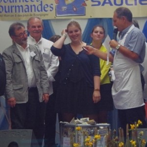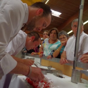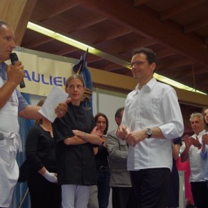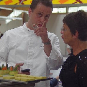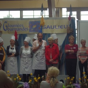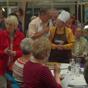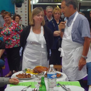 Au menu des démonstrations culinaires, une côte de veau fournie par la Confrérie du Veau de lait élevé sous la mère, invitée d’honneur de ces 27ème Journées Gourmandes, cuisinée en public par Patrick Bertron, chef du Relais Bernard Loiseau, a débuté ces démonstrations. Le public a ensuite pu goûter au plat et entendre les réponses aux questions qu’il lui ont posé.