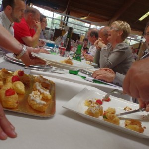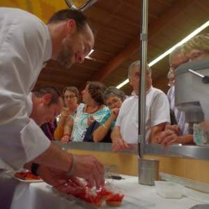 Les ravioles de betteraves farcies au saumon et au Brillat Savarin ont été préparées par Jean-Alain Poitevin du Château de Chailly. Enfin, Arnaud Barande a préparé un merlan de ligne accompagné de son crumble de parmesan et d’un espuma d’estragon. À chaque fois des assiettes de dégustation ont régalé le public.
