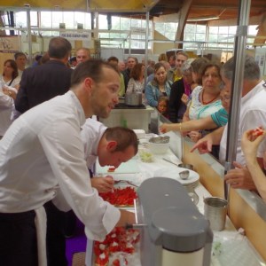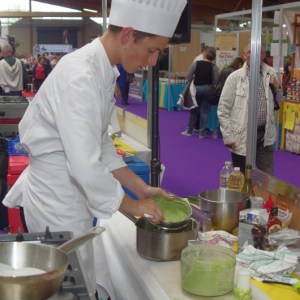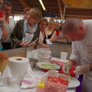 Jeudi 5 mai. Dès 10h00 les premiers visiteurs se pressent aux caisses. Grosse affluence tout au long de la journée. Au menu, le concours des petits chefs le matin et démonstrations culinaires l’après midi.